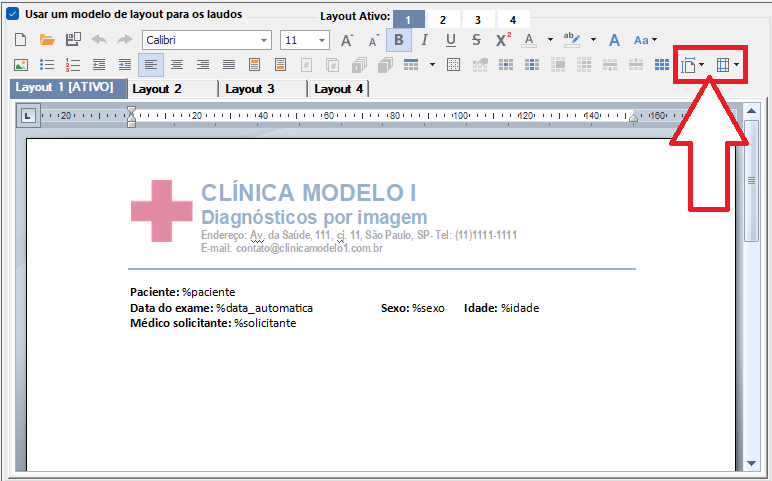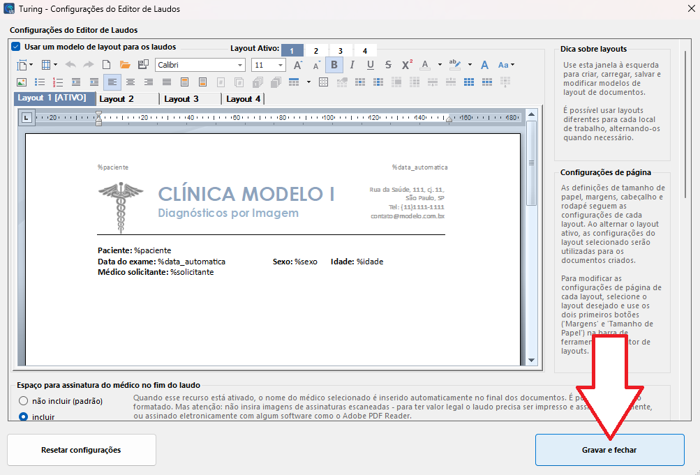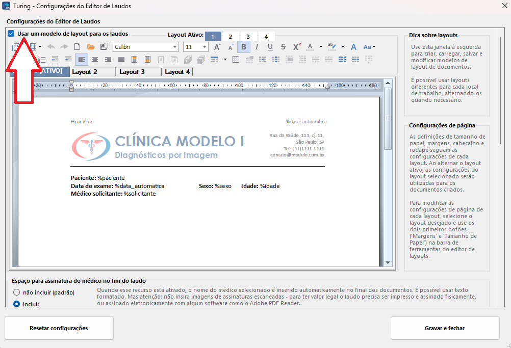 2) Assinale a opção “Usar um modelo de layout para os laudos”